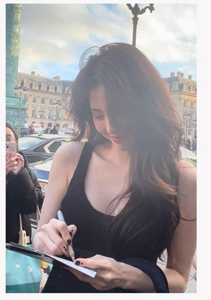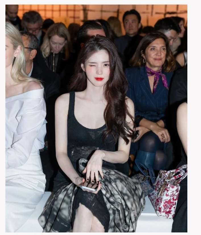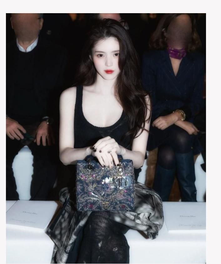 Han Sohee wearing a black dress that exposes her cleavage. Han SoHee looks even more beautiful with the difference between her white skin and her black dress.