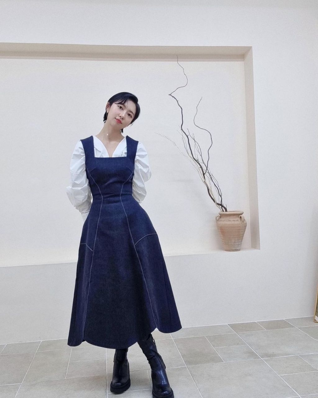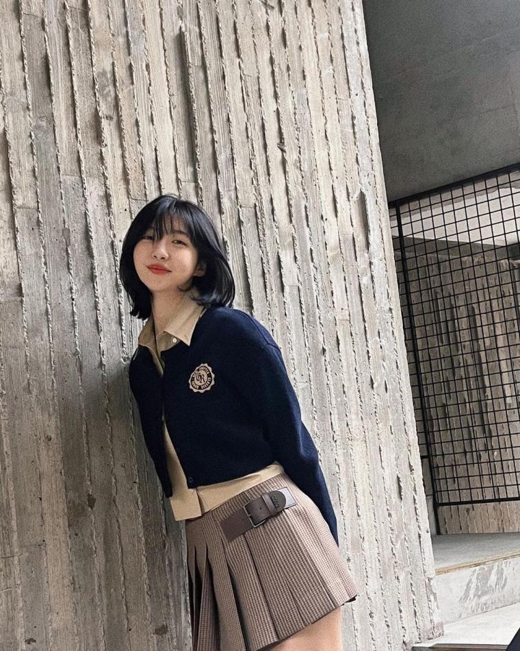 In the DAZED magazine photo featured above, she perfectly pulls off the casual, winter boyfriend look. Wearing a cozy blue fleece jacket and brown corduroy pants, she embodies a youthful and trendy vibe. Her signature short bob with bangs highlights her small face and distinct features, proving why she is the ultimate "short hair icon."