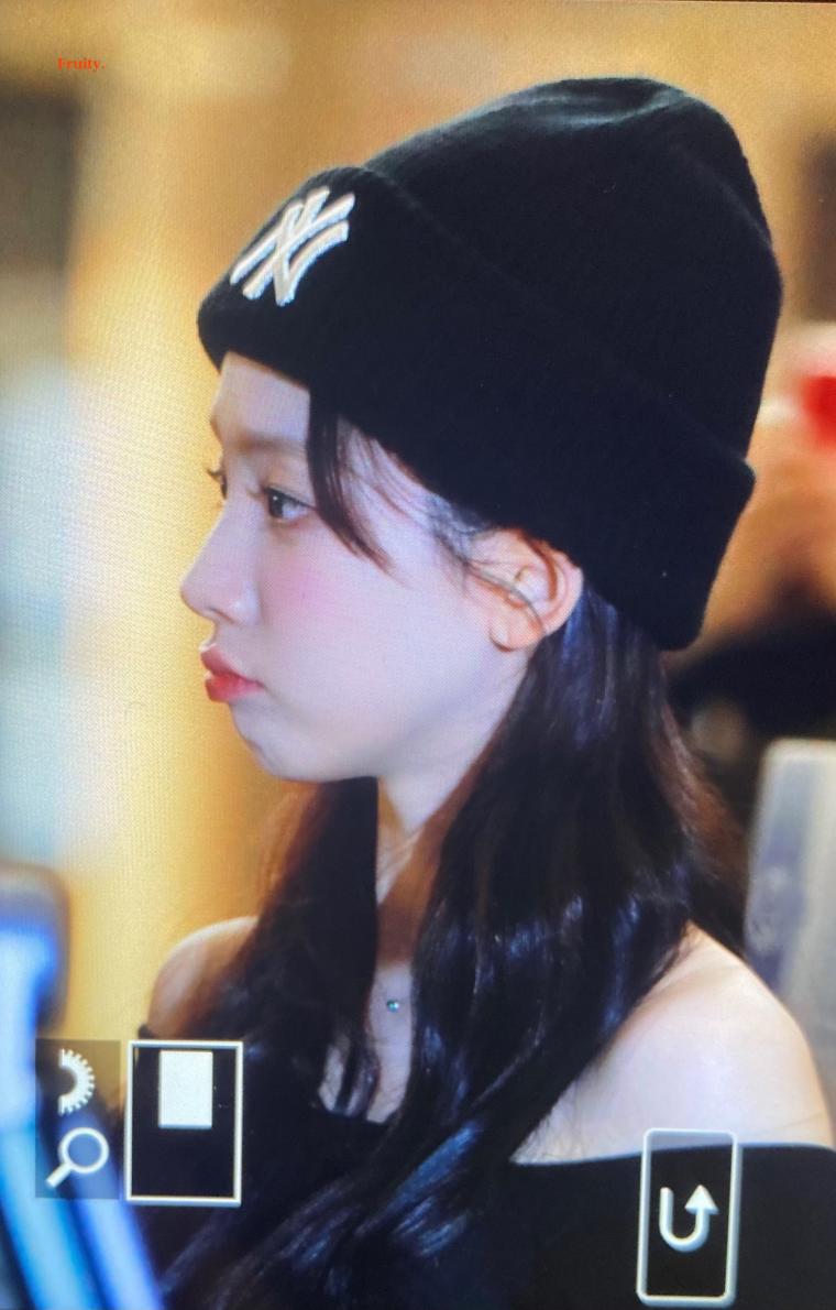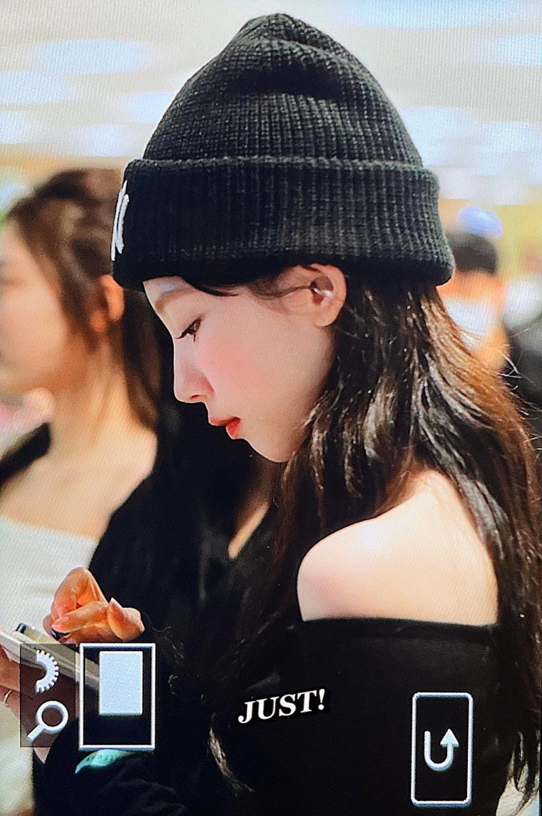 As seen in the photo above (where she is wearing the black NY beanie), her facial features are distinct and sharp even in a casual setting. The high nose bridge, big eyes, and V-line jaw shape remain perfect even in blurry, zoomed-in Karina candid shots. This is why fans say she has "defeated" the phone camera.