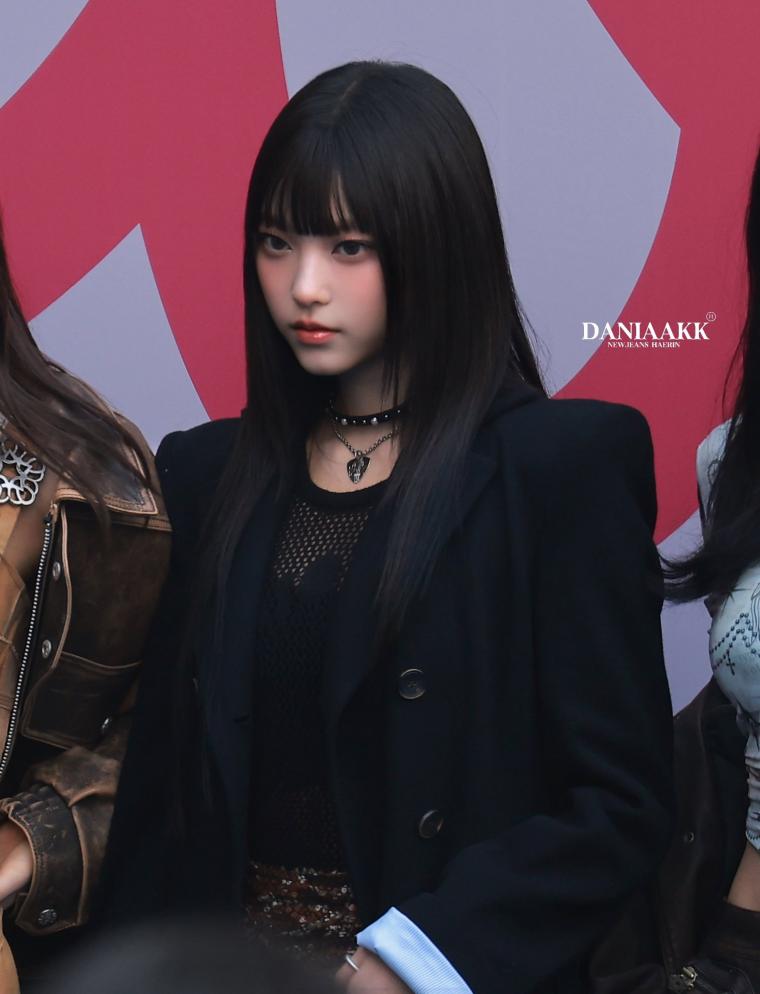 NewJeans Haerin wearing a sheer knit and black suit have become a hot topic. The chic image of Haerin, the elegant aura of the black suit, and the feminine feel of the see-through knit blend perfectly. I hope to see more of NewJeans' Haerin in the future.