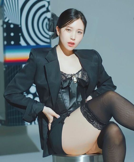 In the newly released collection of photos and videos, Mina is seen rocking various stage outfits that accentuate her stunning proportions. From sleek black military-inspired uniforms paired with over-the-knee boots to trendy cropped hoodies and denim shorts, every look highlights her iconic silhouette. One standout image from a professional shoot shows her in a sophisticated blazer and lace-trimmed stockings, proving that she can effortlessly transition from a powerful performer to a high-fashion model.