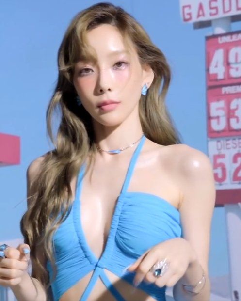 Taeyeon Cleavage Exposed Iconic Blue Halter Look & Y2K Aesthetic