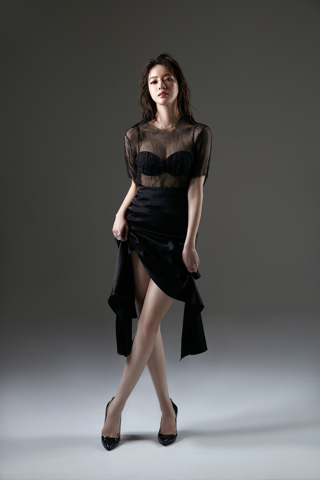 Yangjungwon boobs exposed photo shoots featuring deeply plunging dresses that accentuate the breast and body curves